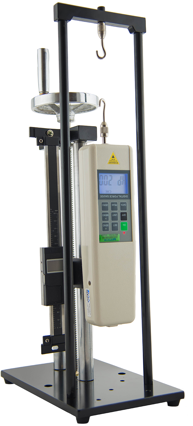 Испытательный стенд сжатия с рычажным механизмом подачи суппорта. В конструкции заложена возможность изменения высоты положения механизма подачи относительно основания. Основные узлы конструкции имеют антикоррозионное покрытие.